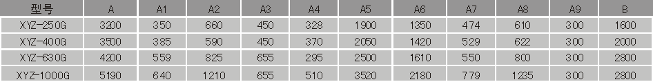 六、XYZ-250G~1000G型稀油站地基尺寸(注:XYZ-6G~125G型稀油站为整体式结构,就地放置即可)