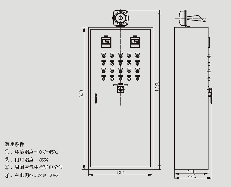 6、配有仪表盘和电控箱,观察运行参数方便,并可实现自动控制和事故报警。