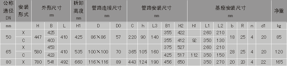 安装形式:X-为下置式,C-为侧置式,