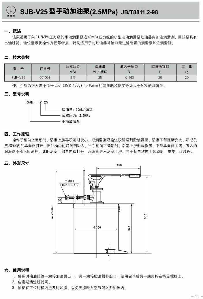 SJB-V25型手动加油泵(2.5Ia)