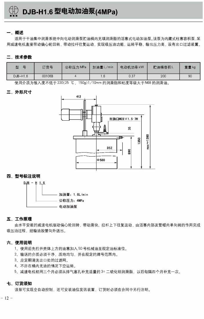 DJB-H1.6型电动加油泵(4MPa)