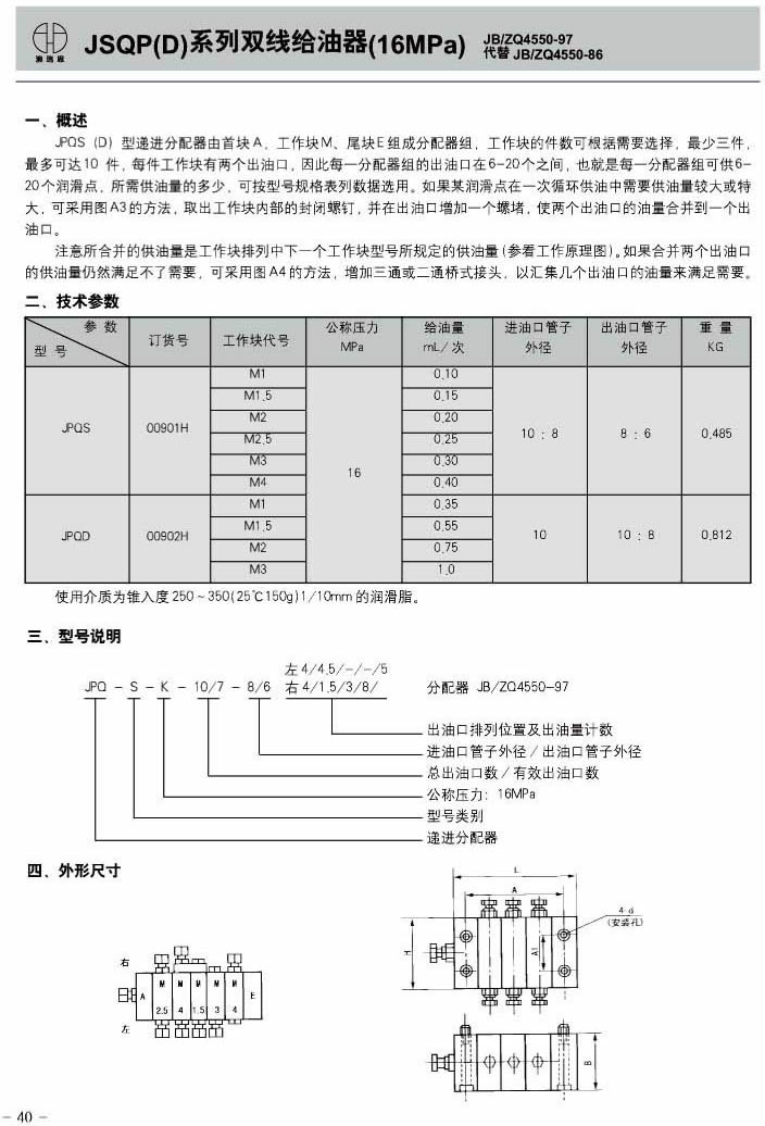 JSQP(D)系列双线给油器(16MPa)