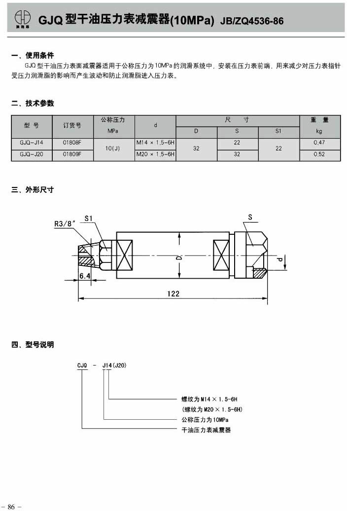 GJQ型干油压力表减震器(10MPa)